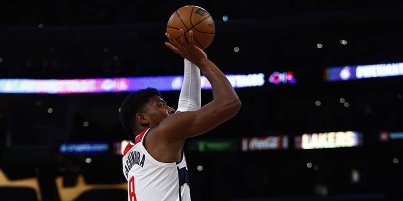 八村は20-13で迎えた第1クォーター残り4分10秒から出場すると、直後にカイル・クーズマのアシストから2試合ぶりに3ポイントシュートを成功。第2クォーターにはゴールしたでで強さを見せ、シュートを決めた。