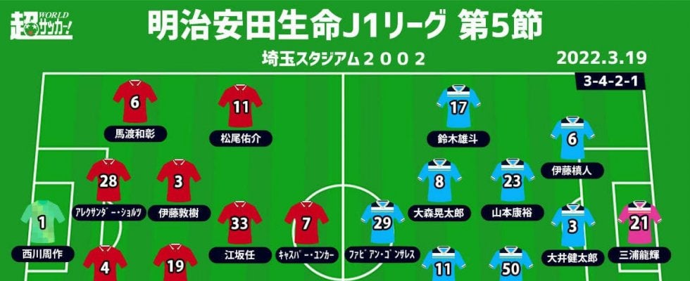 【明治安田生命J1リーグ第5節】 2022年3月19日(土) 15:00キックオフ 浦和レッズ(13位/4pt) vs …