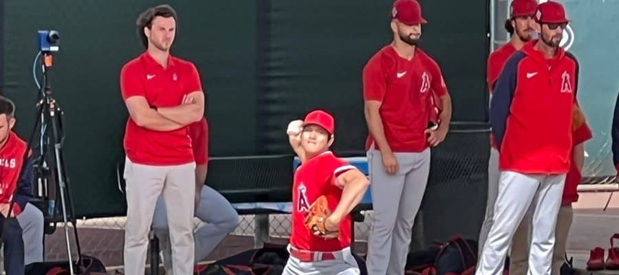 この日はベテランのカート・スズキ捕手が大谷のブルペン投球を受けた。「良かったよ。投げていても心地よさを感じているように見える。状態も良好。昨年よりいい投球をすると僕は感じているんだ」と好感触を語った。この日はフォーシーム、チェンジアップなどを投げた。「投球後にフォーシームについて質問してきたね。完全な真っすぐで来るわけではないんだ。(色々な動き方をするから)面白いね。直球が少しカット気味に動くんだ」と威力を語った。(盆子原浩二 / Koji Bonkobara)