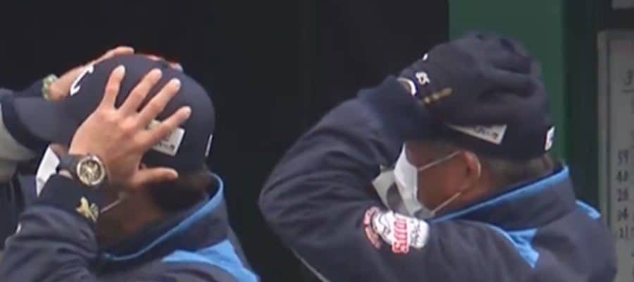 西武の首脳陣トリオが「可愛すぎ」 伏兵の3ランに頭抱えて仰天リアクション