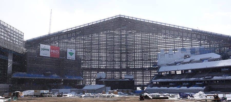 2023年3月の開業に向けて建設が進む日本ハムの新球場「ES CON FIELD HOKKAIDO」【写真:町田利衣】