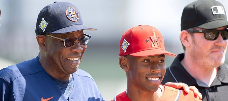親子共演をはたしたアストロズのダスティ・ベイカー監督(左)とナショナルズのダレン・ベイカー【写真:Getty Images】