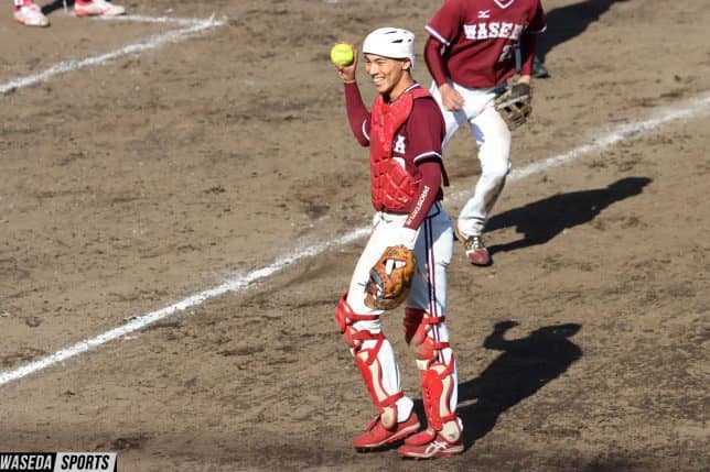 男子ソフトボール部主将の澤優輝(人=東京・國學院久我山)が早大での4年間でマスクを被った試合は公式戦だけで50試合に及ぶ。ソフトボールを始めたのは大学からだが、下級生時からレギュラーとして活躍し、最終学年では主将・四番・捕手と3つの重責を担った。扇の要としてチームを引っ張り続けた澤の4年間の歩みをそのルーツとなった野球人生と共に紐解く。