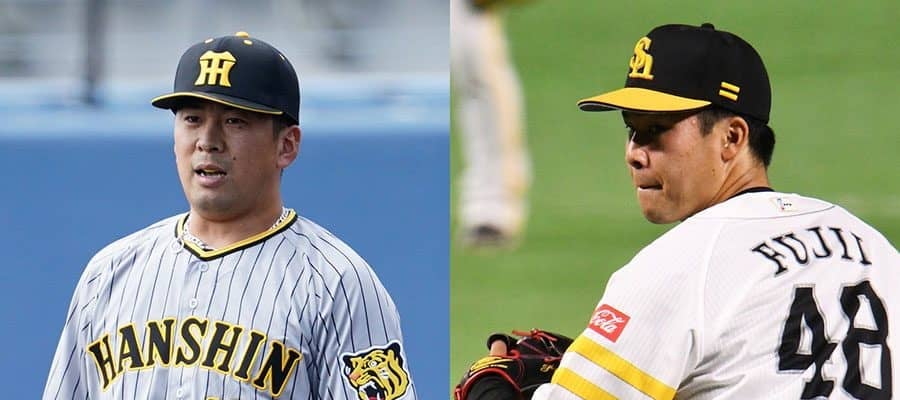 阪神・渡邉雄大(左)とソフトバンク・藤井皓哉【写真:藤浦一都、荒川祐史】