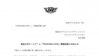 筑波大学男子バスケットボールチーム初のホームゲーム『TSUKUBA LIVE!』が開催延期に