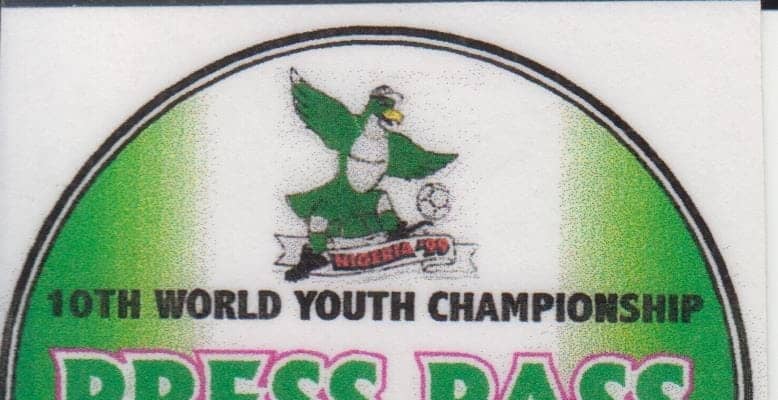 ワールドユース日本の初戦、カメルーン戦のプレスパス。珍しい円形! 提供/後藤健生