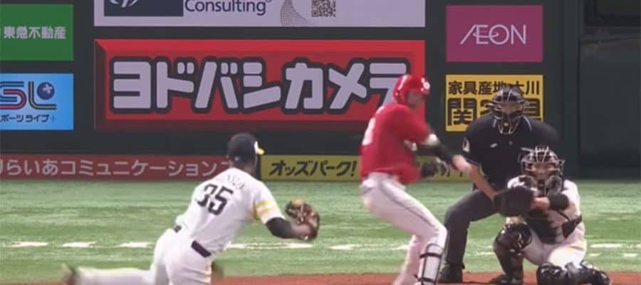 【実際の動画を見る】避けたのにストライク…モイネロの魔球カーブに打者はお手上げ