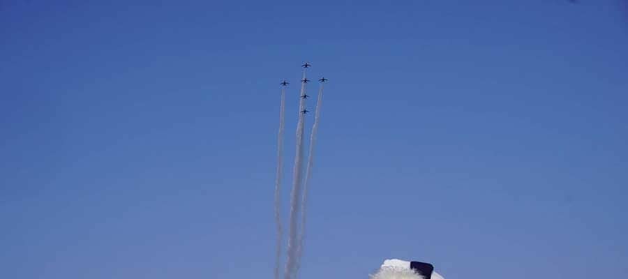 新生ベルーナドーム上空を彩った“ブルーインパルス” 鮮やか飛行に大歓声起きる
