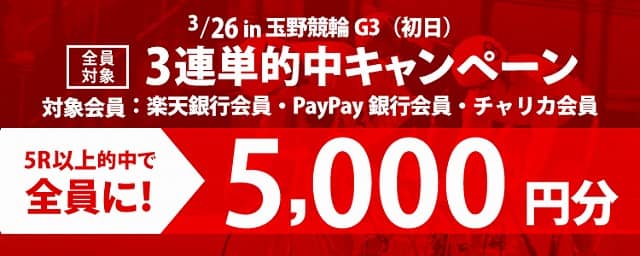 \玉野競輪G3「瀬戸の王子杯争奪戦」3連単5R以上的中で全員に5,000円還元/
