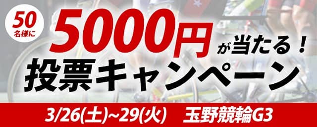 \50名様に5,000円が当たる!玉野競輪G3「瀬戸の王子杯争奪戦」投票キャンペーン/
