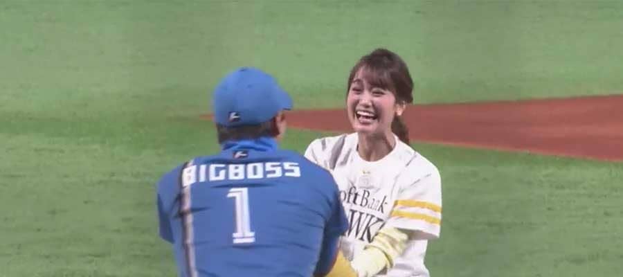 スカートひらり… 女優・大政絢さんが豪快投球でファン魅了「可愛すぎて」