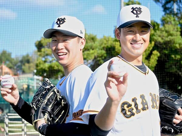 今シーズンの活躍が期待される巨人・山﨑伊織(写真左)と堀田賢慎