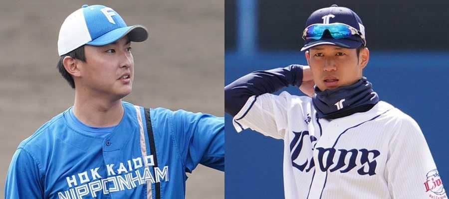 日本ハム・石川直也(左)と西武・若林楽人【写真:荒川祐史】