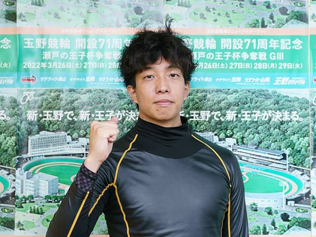すんなりかなと思ったのですが、外からフタをされて。でも、どこかでチャンスがあると思っていたので、落ち着いて行こうかなと。雨で横の動きとか見づらかったのですが、先頭に出切ってからは落ち着いて走れたかなと思います。玉野バンクは初めてなのですが、雨だったので、落ち着いて感触を確かめながらのレースではなかったです。2日目以降しっかり確かめて感じ良く走れたらと思っています。