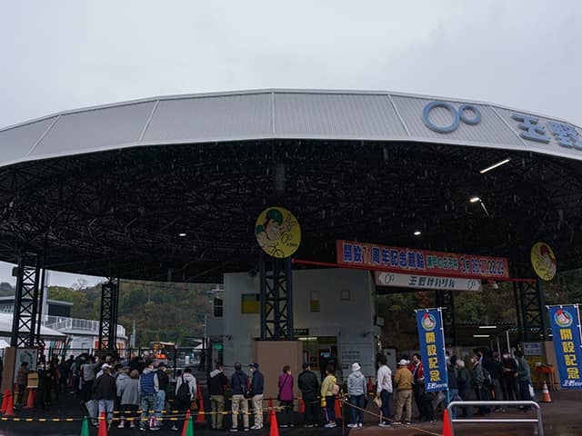 雨の中、待ちわびた大勢のファンが開場を待つ