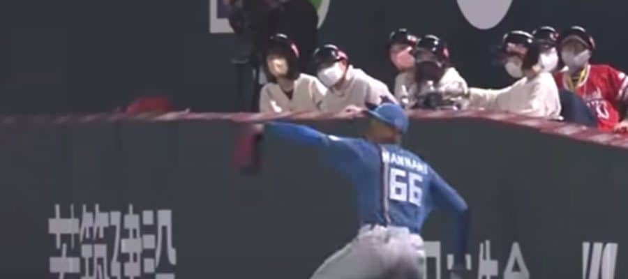 【実際の動画を見る】ファウルゾーンから放たれたレーザー 万波が振り向きざまに見せた二塁送球