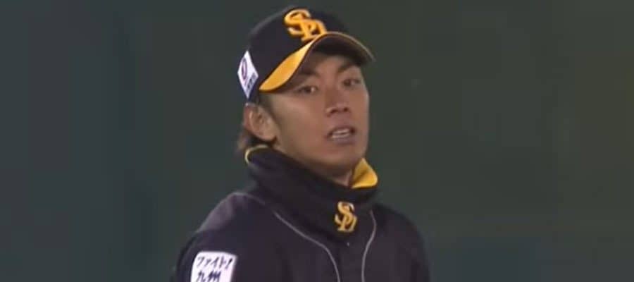 振り向きざまの“超ロング鬼肩”発動 鷹・今宮は「身体能力にモノいわせてる」