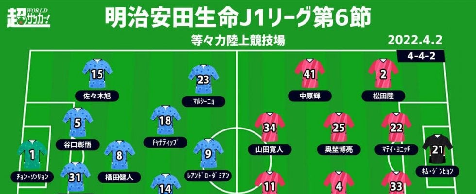 【明治安田生命J1リーグ第6節】 2022年4月2日(土) 15:00キックオフ 川崎フロンターレ(1位/16pt) v…