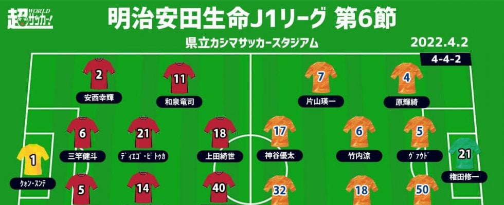 【明治安田生命J1リーグ第6節】 2022年4月2日(土) 16:00キックオフ 鹿島アントラーズ(3位/12pt) v…