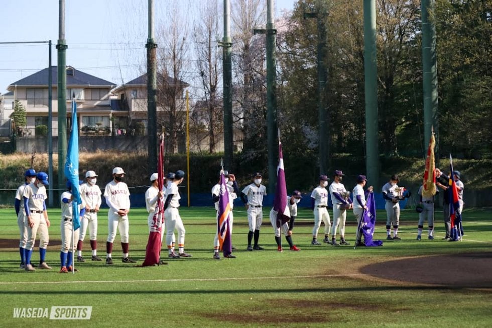 開幕を勝利で飾った。2日、準硬式野球の東京六大学春季リーグ戦(春季リーグ戦)が開幕し、早大は第2試合で明大と対戦した。試合は、序盤から早大打線が爆発。3回までに先発した野手全員に安打が飛び出すなどし、5回までに9点のリードを奪う。6回以降は明大の反撃に遭い、1点差まで詰め寄られるも、安在悠真副将(人4=早稲田佐賀)が踏ん張り、春季リーグ戦は白星発進となった。
