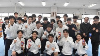 <写真・試合後記念撮影に応じる選手たち>4月3日、関西大学ボクシング場にて第45回総合関関戦が行われ、関学は関大を4-1…