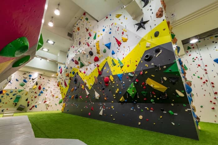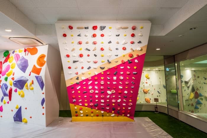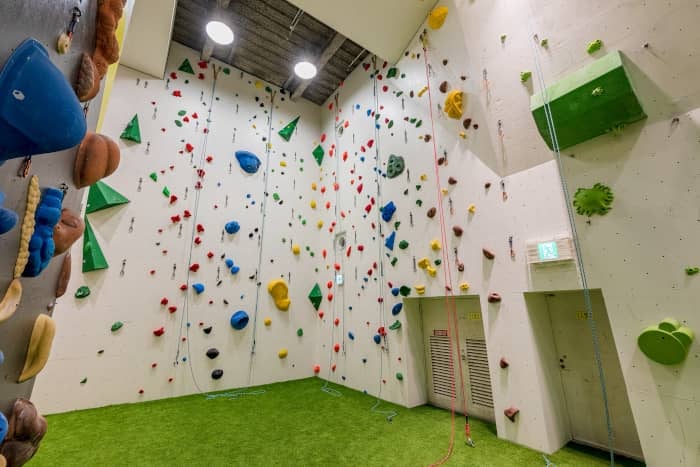 3月24日、大阪の繁華街「ミナミ」にあるスイングよしもとビルでボルダリング壁とロープクライミング壁を備えるクライミング…