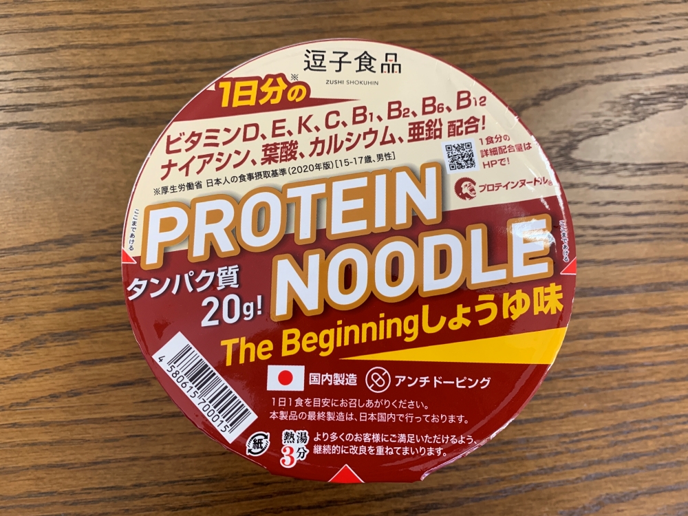 株式会社逗子食品より、たんぱく質や1日分のビタミン類、カルシウム、亜鉛などを摂取できるカップ麺が発売されました。その名も「プロテインヌードルThe Beginningしょうゆ味」。栄養が偏りがちの食生活を送っている方、ラーメンが好きだけど健康のためジャンクフード類を節制している方、スポーツを頑張っている筋トレ民たちに活躍しそうな新商品です。