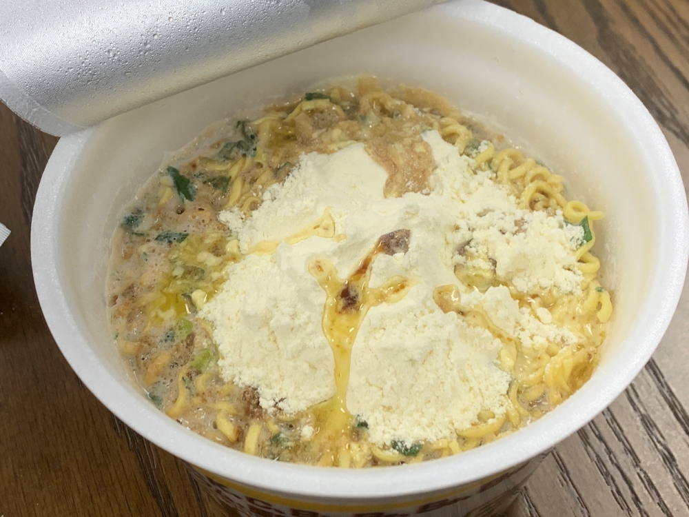 粉末の量は、従来のカップ麺よりも多い印象