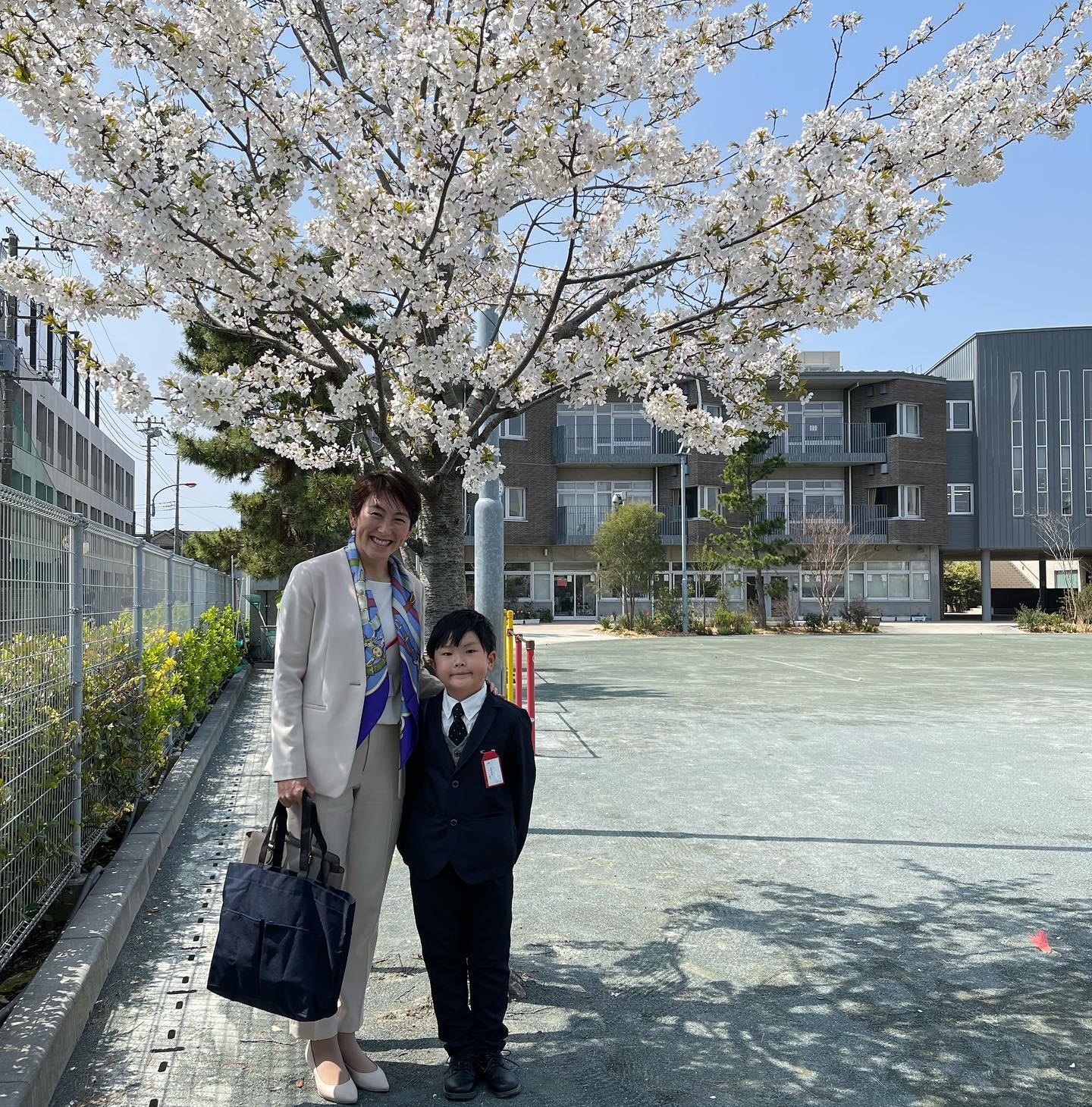 元プロテニスプレイヤーの杉山愛さんが8日、自身のインスタグラムを更新。愛息子の小学校入学を報告した。