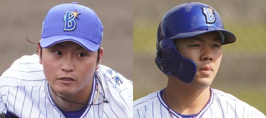 DeNA・砂田毅樹(左)と楠本泰史【写真:荒川祐史】