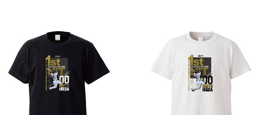 ロッテ池田のプロ初安打記念Tシャツ【写真:球団提供】
