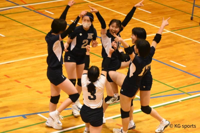 <写真・得点を決め喜ぶ選手たち>4月9日、2022年度関西大学バレーボール連盟春季リーグ初戦が行われた。関学は佛教大と対…