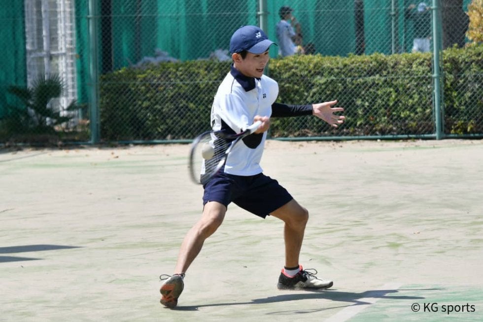 <写真・2日目に進出を決めた下原> 4月9日、マリンパーク北村他にて2022年度関西学生ソフトテニスシングルス選手権大会…
