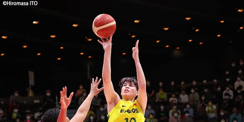 また、ENEOSが21本ものターンオーバーを記録したことについては「私も4回しているんですけど、相手のプレッシャーを感じて自分たちが逃げながらパスをする場面が多かったのかなと思います」と振り返る。さらに「パスミスするくらいならシンプルに自分で得点を取りに行った方がいいので、そうしたいと思います」と力強く語った。