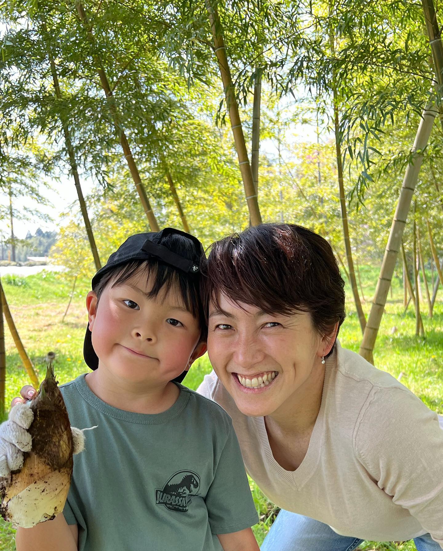 🌈杉山愛さんが家族でたけのこ狩り🎋1年前から成長した息子の姿にも感激😊