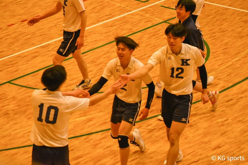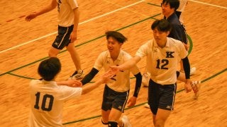 <写真・得点が入り喜ぶ選手たち> 4月10日、2022年度関西大学バレーボール連盟春季リーグ2戦目が行われた。関学は京産…