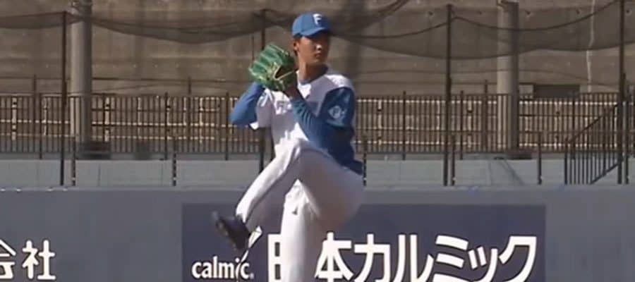 2軍ヤクルト戦で実戦デビューを果たした日本ハムのドラフト1位・達孝太【画像:パーソル パ・リーグTV】
