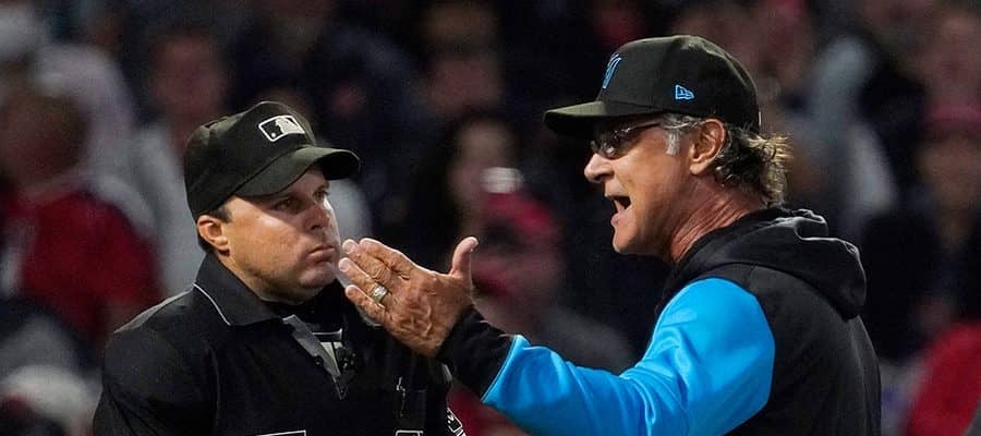 マッティングリー監督は球審のストライク判定に抗議、36度目の退場となった■エンゼルス 6ー2 マーリンズ(日本時間12日…