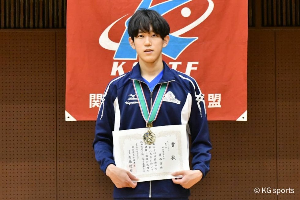 シングルス優勝を果たした葛西啓功「団体戦が朝一の試合で、動きが悪く簡単に負けてしまった。シングルスで同じ相手に当たったが、一度負けている相手。自分より格上だと思い、挑んだ。同じような負け方をしないよう、どう戦うか工夫しながら試合に臨めた。今後は関西学生で優勝と全日本学生でベスト16に入ることを目標にしたい」