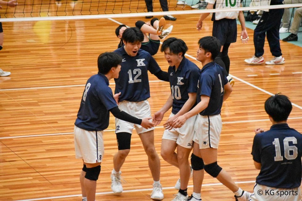 <写真・得点が入り喜ぶ選手たち> 4月16日、2022年度関西大学バレーボール連盟春季リーグ第3戦が行われた。関学は大産…