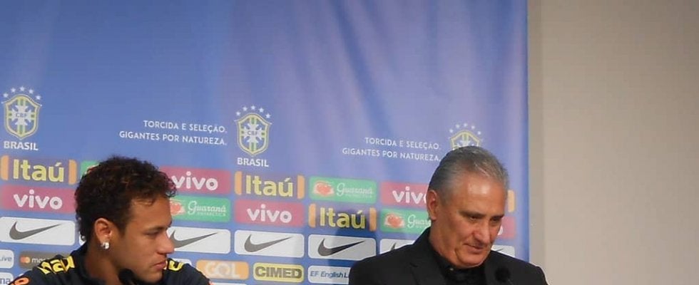 2017年11月、日本戦後の記者会見でネイマール(左)を擁護したチッチ監督 (C)Y.Osumi