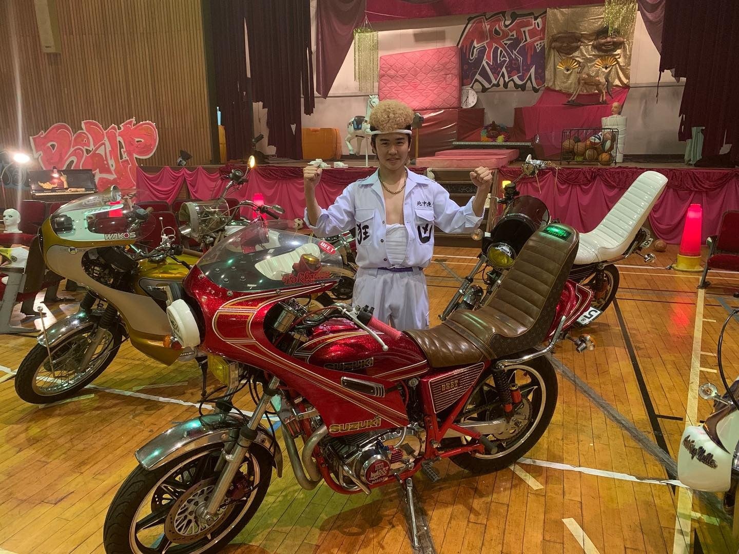 3月から公開されている映画「KAPPEI カッペイ」に出演しており、3台のバイクに囲まれた写真を投稿。
