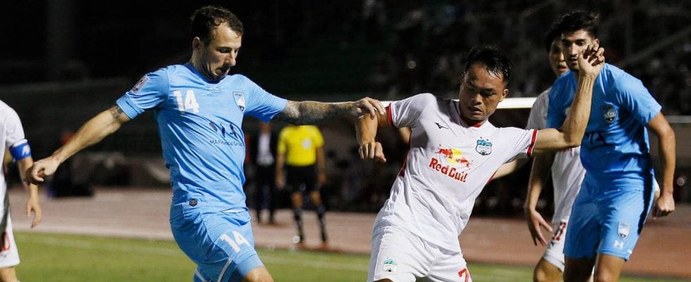 80分にはHAGLがビッグチャンス。左サイドを仕掛けたブランドンがラインギリギリからクロス。これをボックス中央に飛び込んだグエン・バン・トアンがヘッドで合わせるも、シュートはわずかにゴール右に外れる。
