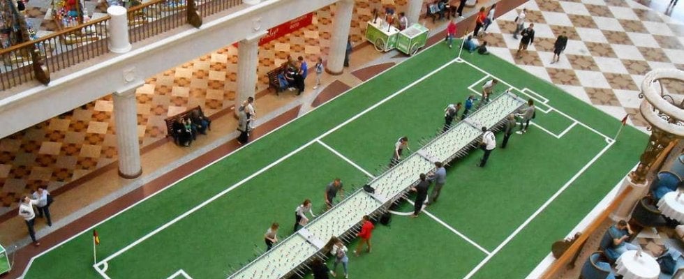 人気とともにサイズも拡大? モスクワのデパートでの30人対30人の「ムカデ・テーブルサッカー」(?) (c)Y.Osumi