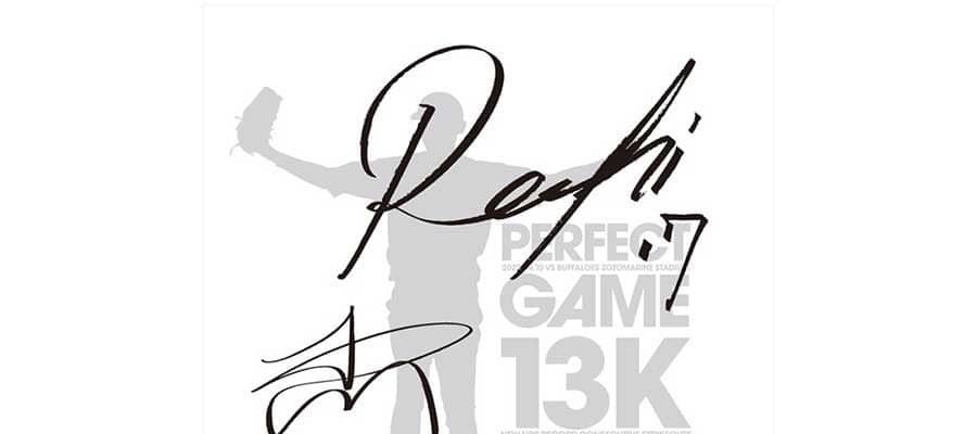 完全試合を記念したロッテ佐々木朗と松川のサインプリント色紙【写真:球団提供】