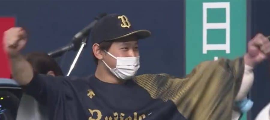 今季初勝利を挙げ喜ぶオリックス・宮城大弥【画像:パーソル パ・リーグTV】