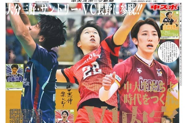 中大バレー部から3人のVリーガーが誕生!元主将の山岸隼(法)はVC長野トライデンツ、鍬田憲伸(法)はサントリーサンバーズ…