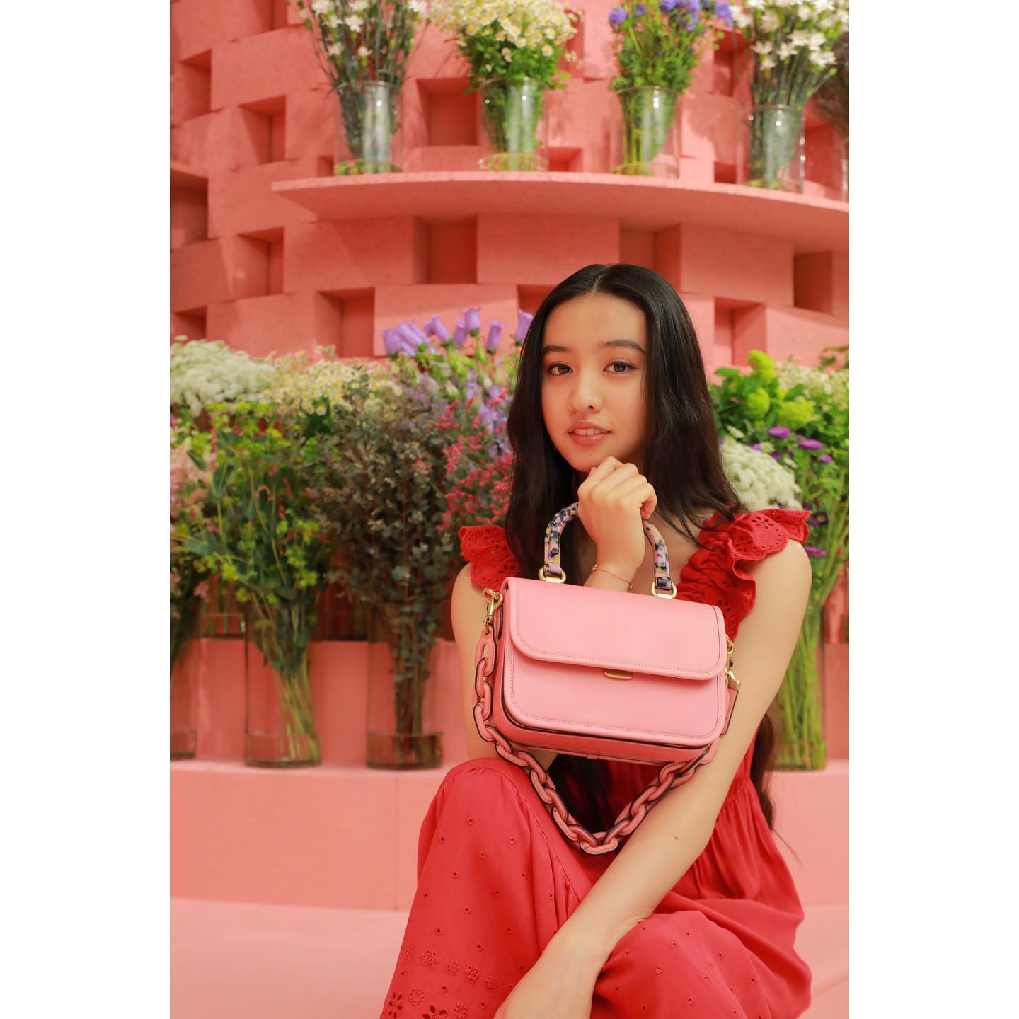 Coachのアンバサダーを務めるKokiさん。同ブランドのポップストアに訪れ、お花に囲まれたソロショットを複数枚アップした。赤色のワンピースに、花柄やピンクのバッグを持つ姿はKokiさんの可愛らしさをより引き出している。