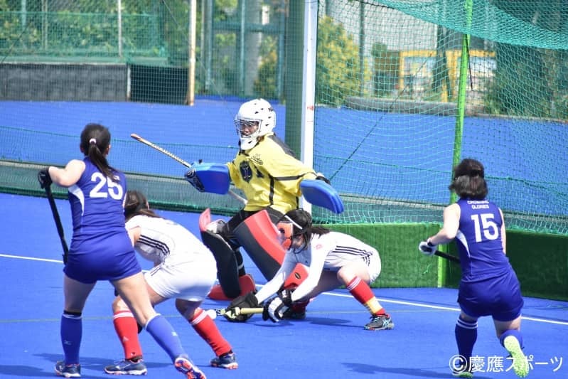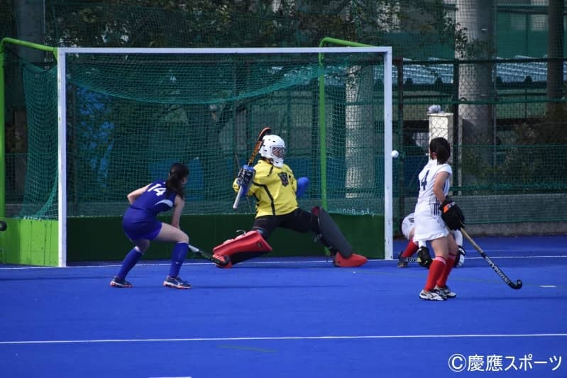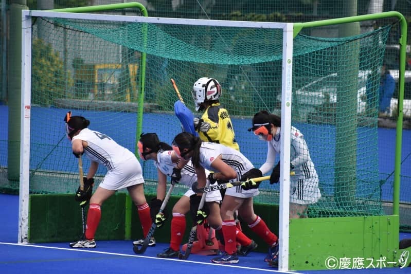 激しいプレスを受ける試合開始直後から山学大は素早くボールを回し、慶大陣内に攻め込む。じっくりとボールを保持する山学大に対し慶大はブロックを敷き、相手にプレスをかける。粘り強く守っていたが開始5分、先制点を許してしまう。その後も相手の猛攻を受ける慶大。しかし体を張ったプレーを見せる。7分にはDFの石田紗英(経4・慶應湘南藤沢)がスティックを出し相手の決定機を防ぐと、その後も相次ぐPC(ペナルティコーナー)のピンチをDF加藤ひより(環4・学芸大附属)が体を張ってブロック。しかしその後10分、14分に加点され、0―3で第1クオーターを終える。