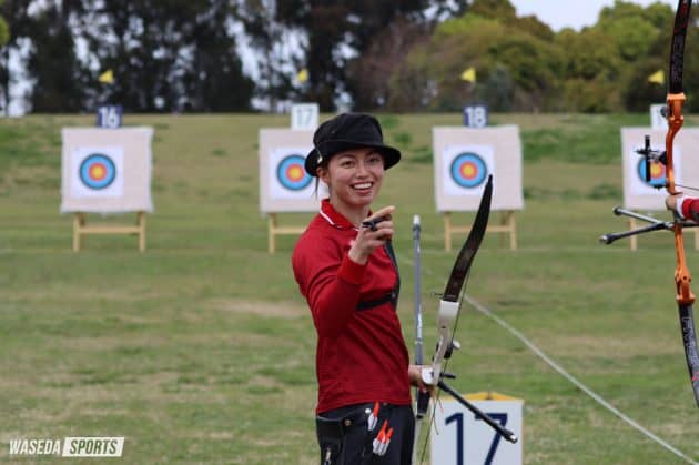 午前中に行われた男子と同様、風が少なく良好なコンディションで行われた前半50メートル。先週の選考会でFISUワールドユニバーシティゲームズ日本代表に選出されたエース・園田稚(スポ2=エリートアカデミー)が久しぶりの50メートルでの試合ながら、全てのエンドを50点以上にまとめ、個人3位を記録。また、矢原七海女子主将(スポ4=福岡・柏陵)、渋谷樹里(スポ1=エリートアカデミー)、高見愛佳(スポ3=エリートアカデミー)が全てのエンドで45点以上をマーク。首位日体大と50点差の2位で前半を折り返した。